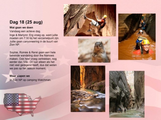Daarna was het alleen nog maar wandelen, terug naar de truck. Ook dat was gaaf, met nog wat riviertjes waar we doorheen moesten en rotsblokken. Voor de rest was het gewoon dezelfde weg terug, maar dan in de zon. We droogden dus lekker snel op! Toen we eenmaal bij de truck aankwamen merkte ik pas hoe moe ik eigenlijk was. Het was inmiddels al 5 uur en we waren om 9 uur begonnen met klimmen. Hank trakteerde ons nog even op een ijsje in Arizona, de derde staat die we bezochten. Ook dat was niet normaal! Ik nam een bolletje en serieus, ik overdrijf niet, een zo’n bolletje was ongeveer drie bolletjes van onze van der Poel bij elkaar… Bon appetit! ![]()