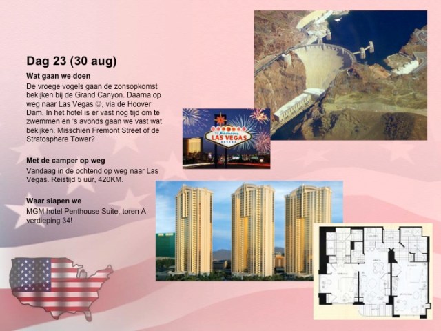 Toen op weg naar de Hooverdam. De dam waar eigenlijk heel Las Vegas het water aan te danken heeft. Voor we daarheen kunnen worden we tegengehouden door security. De hele camper wordt van binnen en buiten gecheckt en uiteindelijk waren ze tevreden. Lang zijn we daar niet geweest, het was bloody hot en iedereen kon niet wachten naar Vegas te gaan.
