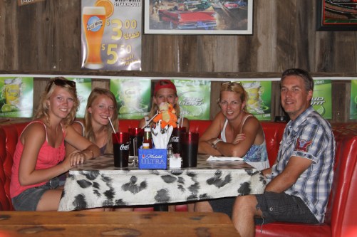 Zoals gezegd waren we om 5:30 serieus al onderweg. Ik lag nog lekker in mijn bedje, natuurlijk met gordijntjes omhoog, te genieten van alles. Rond 08:30 reden we van de snelweg om even een stukje over Route 66 te rijden. We wandelden langs de winkeltjes gevuld met spullen uit de sixties, geweldig. Voor een ontbijtje was het hier nog net wat te vroeg dus reden we door naar Kingman, over Route 66. We ontbijten (jawel, ontbijten) bij Damber & Steakhouse. De vloer is bedekt met zaagsel en de tafeltjes bedekt met koeientafelkleedjes. We eten heerlijk, spelen een muziekje af op de jukebox en kijken wat American Football.