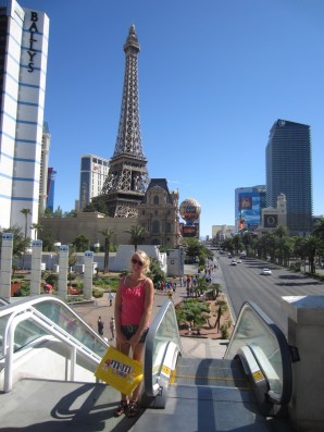 En uiteindelijk gingen we op weg. Alleen de weg door het hotel naar buiten was al een hele belevenis! Over de rode loper langs alle rinkelende, flikkerende gokautomaten, door een ongelooflijk groot winkelcentrum (minstens 2 keer zo groot als centrum van Hengelo) en langs het hok van de MGM leeuwen. Eindelijk buiten.