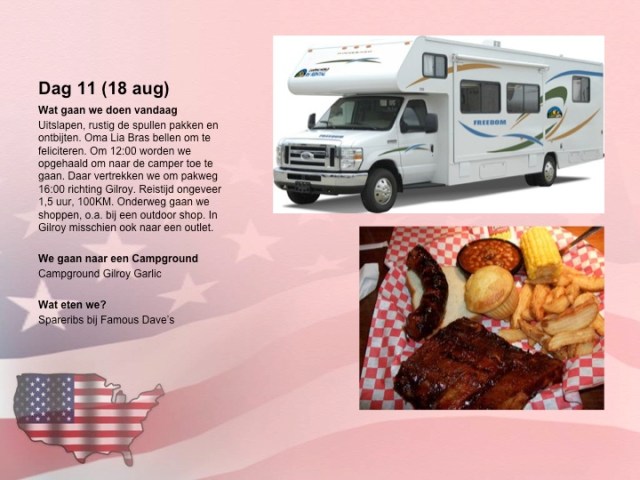 We reden naar Gilroy, waar we een middagje gingen shoppen. Pap parkeerde de RV over 4 parkeerplaatsen heen (ook dat was een heel avontuur) en wij maakten een fruithapje als lunch. Toen stapten we de outlet in en bijna elke winkel die we binnen liepen verlieten we weer met volle tassen. Wat een inkopen hebben we daar gedaan! Maar dat was ook wel goed aangezien we daarna alleen nog maar konden shoppen in Las Vegas.