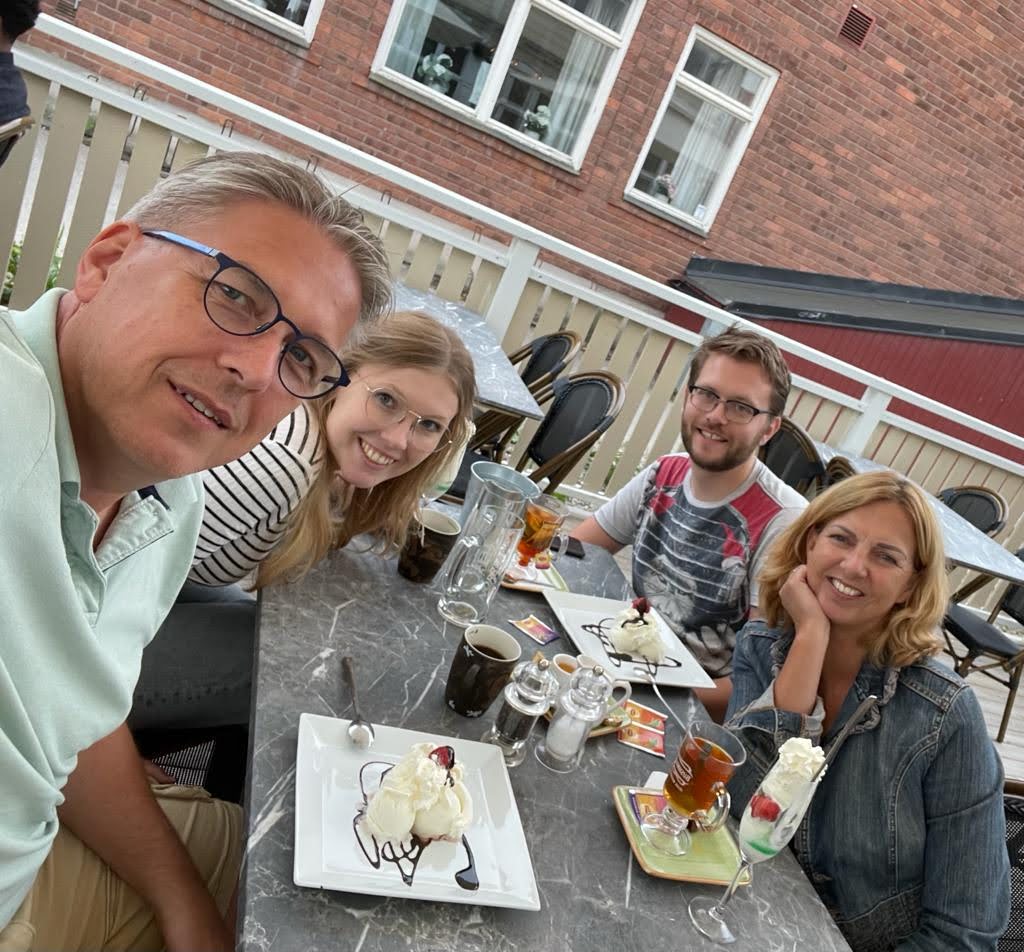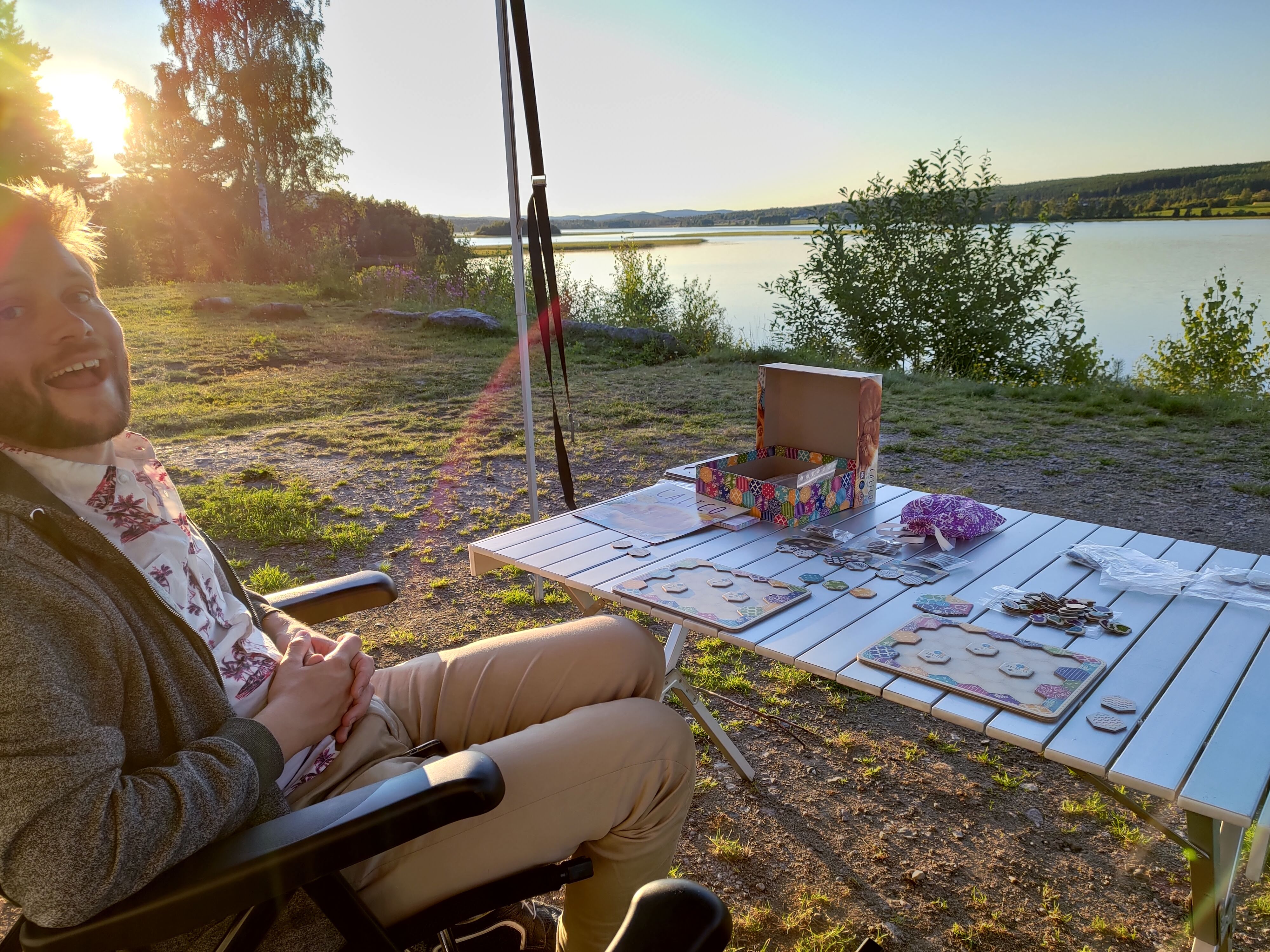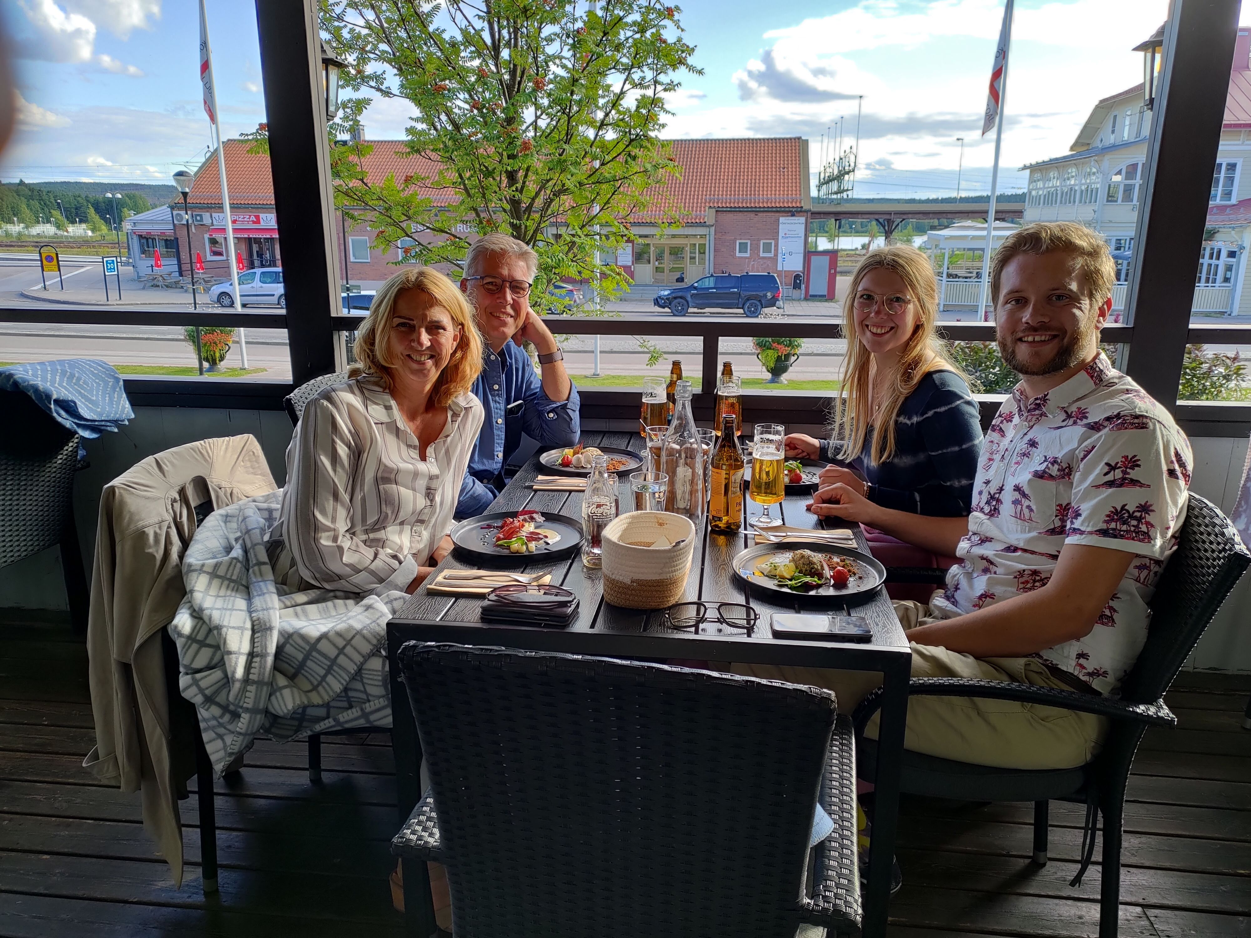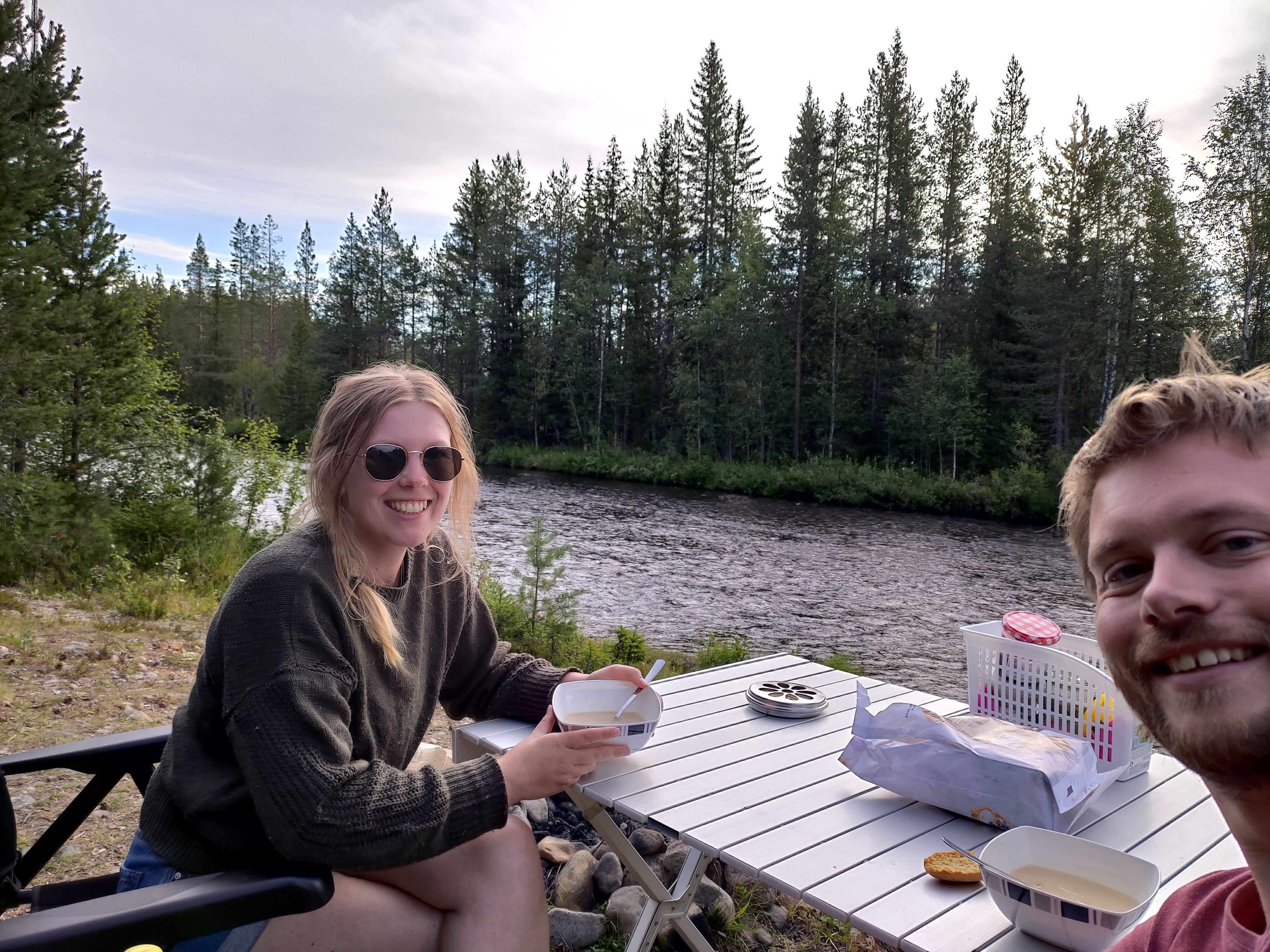 Wat was het een magisch moment om elkaar na zo’n lange tijd weer in het echt te zien, in Zweden notabene! Na heel wat knuffels (en wat tranen) kon onze vakantie officieel beginnen. We parkeerden onze camper op de fantastische Ljusdals Camping, de camping van Patrick en Marja; inmiddels hele goede vrienden van pap en Inge. We hadden al zoveel over hen gehoord, dat het ook hoog tijd was om hen te ontmoeten! We werden meteen warm verwelkomd en kregen een prachtige plek aan het water. Wat een genot!